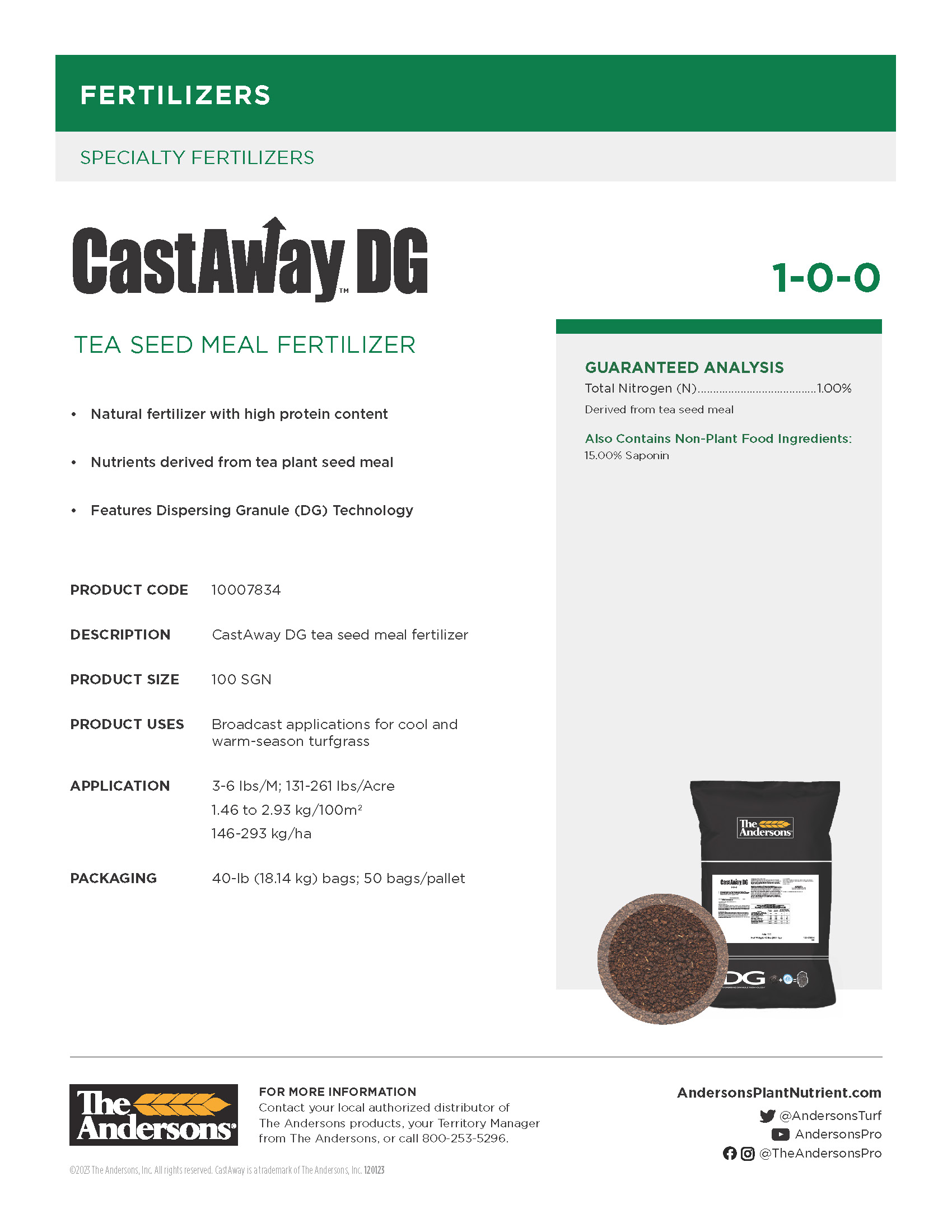 Dispersing Granule (DG) TechnologyCastAway DG utilizes The Andersons’ patented Dispersing Granule (DG) Technology, which allows a single granule to dissolve into many small particles upon contact with water. This enhanced dispersion provides superior coverage and enhanced efficacy. | ![]() |